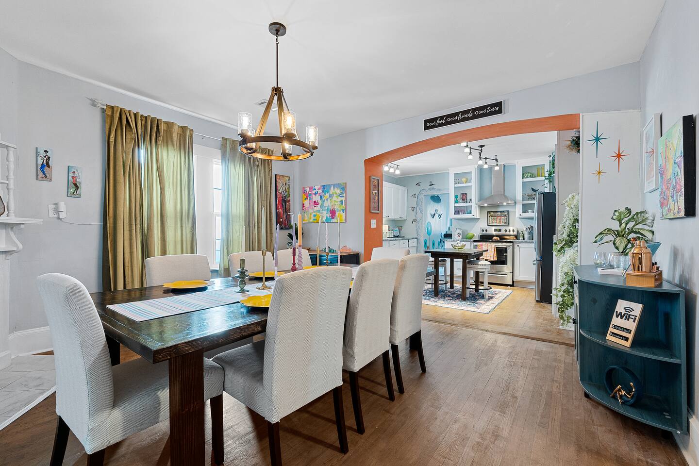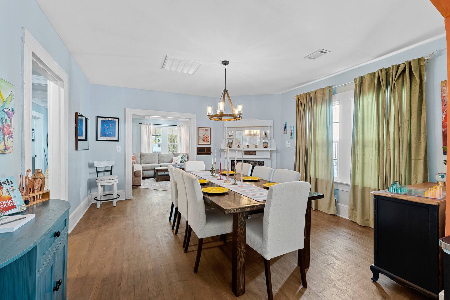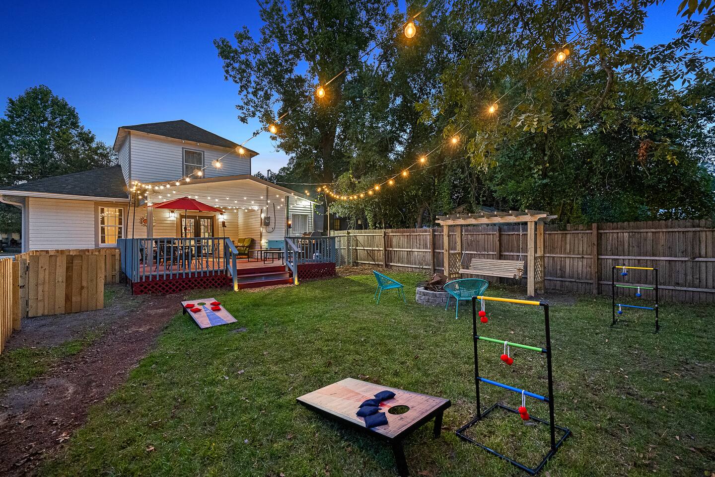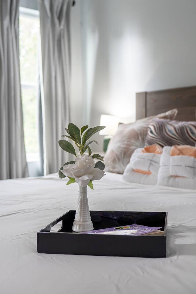 ✨ The Whistling Porch – Bright, Spacious Augusta Retreat Minutes from the Masters ✨ Welcome to The Whistling Porch, a light-filled, beautifully designed 4-bedroom, 3-bath retreat in the heart of Augusta, Georgia. This home is named in honor of our beloved grandpa Bob, who had a gift for spreading joy everywhere he went — often through a cheerful whistle. Just like Bob, this house radiates warmth, optimism, and the easy comfort of good company. Whether you’re here for the Masters Tournament, a family getaway, or a fun escape with friends, The Whistling Porch was made for laughter, relaxation, and lasting memories. 🏡 The Space Step inside and exhale — the home’s airy, open-concept design connects the family room, living room, dining area, and kitchen into one beautiful, social space. It’s perfect for cooking, entertaining, or just gathering around music and conversation. Kitchen: Bright, open, and fully stocked for real cooking and entertaining. You’ll find everything you could possibly need — a complete set of pots, pans, baking sheets, serving bowls, and utensils. There are two full silverware sets, a knife block, multiple glasses (including wine glasses and mugs), and essentials like olive oil, salt, pepper, and a full range of spices. Enjoy two coffee options — a Keurig and a Nespresso — plus a wine opener, bar tools, and thoughtful extras that make this kitchen feel like home. Dining Room: A beautiful centerpiece of the house with a large table for eight, upgraded gold-colored silverware, cloth napkins, martini tools, and elegant touches for special meals. The chandelier with Edison bulbs glows over colorful candlesticks, and we’ve even included candles and table décor for birthdays or celebrations, because we believe every stay deserves a little sparkle. Living Room: Spacious, comfortable, and designed for connection. Sink into the large sofa, stream your favorite shows on the Roku TV, and enjoy the natural light that fills the room throughout the day. It’s the perfect spot for relaxing after a day at the Masters, movie nights with friends, or lazy mornings with coffee in hand. 🛏 Bedrooms & Bathrooms Primary King Suite: Filled with natural light, ceiling fan, smart TV, and windows overlooking the front porch. Downstairs Queen Suite: Has its own private bathroom, dresser, TV, desk, and sitting area — perfect for guests seeking privacy. Upstairs King Bedroom: Airy and peaceful with soft blue tones, seating nook, ceiling fan, and TV. We call this the "sensory room" as there are no artwork at all, just neutral tones. Upstairs Twin Room: Two cozy twin beds with dresser, closet, and TV — ideal for kids or friends. Bathrooms: 3 total — bright, clean, and stocked with towels, essentials, and thoughtful touches. 🌙 Upstairs Hallway Nook At the top of the stairs, you’ll find a peaceful little hallway retreat — a quiet corner with a couple of comfortable seats, perfect for reading, journaling, or just taking a moment to yourself. As night falls, you’re accompanied by a friendly astronaut (long story!!) light that casts tiny twinkling stars across the ceiling, adding a dreamy glow to the space. It’s a small, magical touch that guests of all ages love — a gentle reminder that even in the calmest corners, there’s always a bit of wonder waiting. 🌿 Outdoor Living The outdoor spaces are pure Augusta magic. Front Porch: Classic Southern charm with a porch swing and cozy seating under string lights — a perfect spot to sip coffee or maybe channel a little Bob and whistle in the breeze. Backyard Retreat: Fenced-in and designed for relaxation and fun — featuring a fire pit, cornhole, ladderball, barbecue grill, pergola swing, tiki torches, BBQ, and plenty of comfortable seating. Outdoor Bluetooth speakers let you enjoy your favorite playlist under the stars. It’s the kind of backyard where afternoons stretch into evenings and memories linger long after the fire dies down. 🎮 Entertainment & Extras --Smart TVs in every bedroom + main living room --Record player and vinyl collection --Indoor & outdoor Bluetooth speakers --Games, puzzles, and backyard activities --LG washer & dryer --Fast Wi-Fi & multiple workspaces --Brand-new central A/C throughout 📍 Prime Augusta Location Perfectly located for everything you want to see and do: 🏌️ 9 minutes → Augusta National (Masters Tournament) 🏙️ 6 minutes → Downtown Augusta (Riverwalk, restaurants, nightlife) ⚾ 11 minutes → SRP Park & Augusta nightlife 🛍️ 13 minutes → Augusta Mall 🛒 8 minutes → Publix + Fresh Take Market ☕ 3 minutes → Starbucks & CVS 🏫 3 minutes → Augusta University (Summerville Campus) 🛍️ 7 minutes → Surrey Center Shopping & Dining ⛽ 10 minutes → Costco 🚑 5 minutes → Piedmont Augusta ER (just in case but hopefully not!) 🚶♀️ Walking distance → Trellis Coffee Bar, a local favorite for espresso and pastries 💖 Why Guests Love The Whistling Porch ✔️ Open-concept design that feels bright, spacious, and welcoming ✔️ Perfect for families, golfers, couples, or groups visiting for the Masters ✔️ Gorgeous indoor and outdoor spaces for entertaining ✔️ Fully stocked kitchen for real cooking and gathering ✔️ Fire pit, cornhole, ladderball, porch swing, and outdoor speakers ✔️ Vinyl player, games, and the perfect blend of style + comfort ✔️ Friendly neighborhood and walkable charm ✔️ Two-night minimum — but guests always wish they’d stayed longer 🌟 Come stay at The Whistling Porch — where comfort meets Southern charm, and the spirit of Bob’s easygoing whistle still lingers in the air.