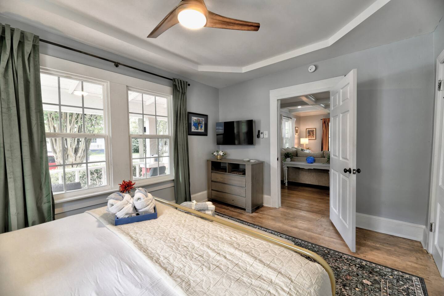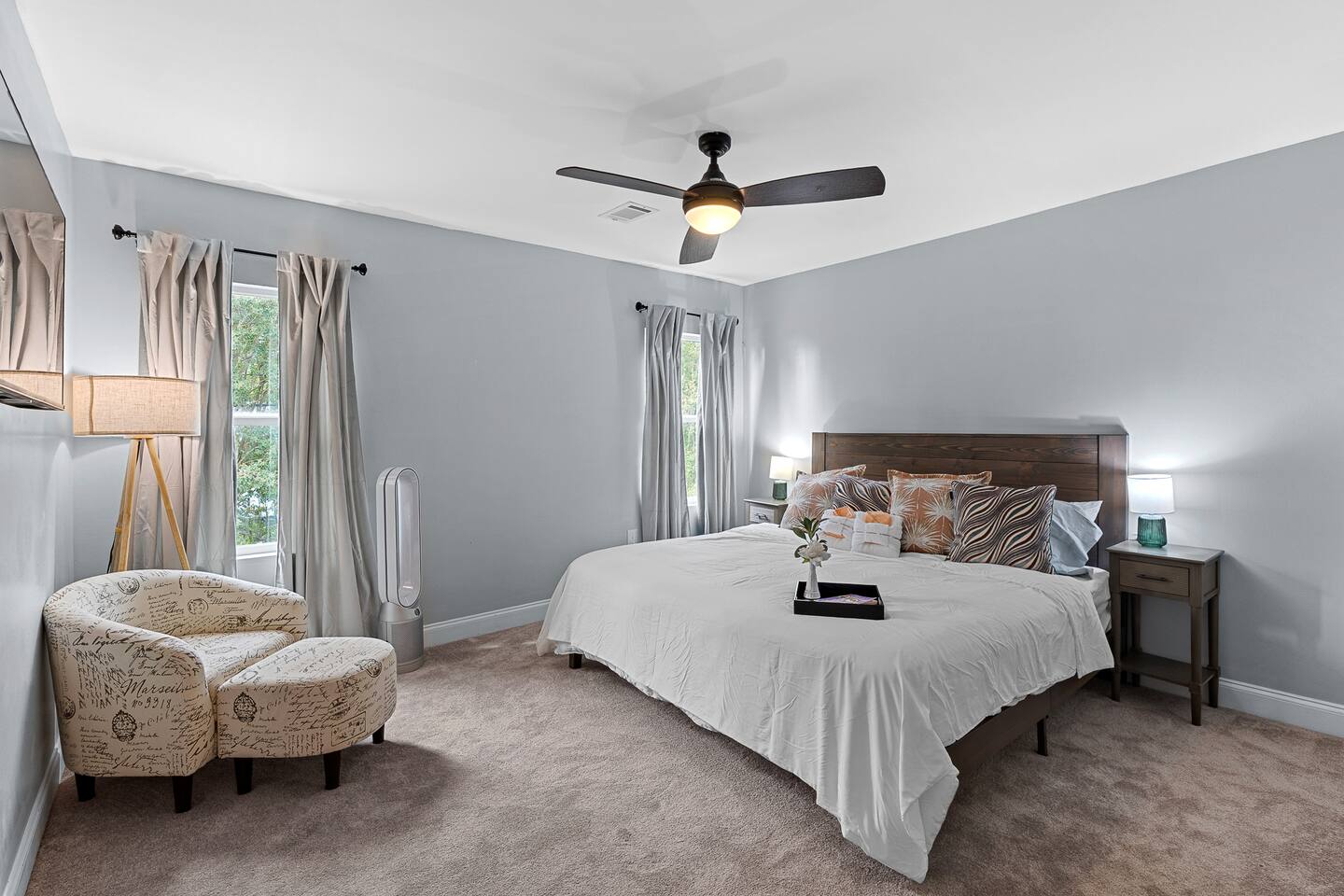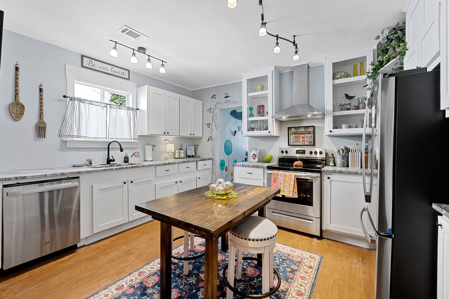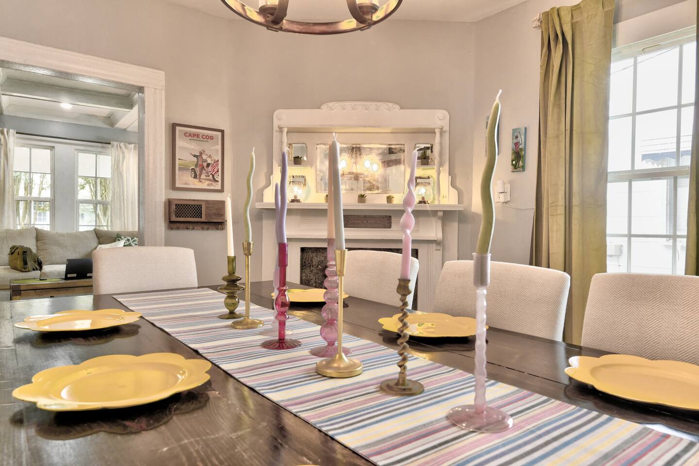 ✨ The Whistling Porch – Bright, Spacious Augusta Retreat Minutes from the Masters ✨ Welcome to The Whistling Porch, a light-filled, beautifully designed 4-bedroom, 3-bath retreat in the heart of Augusta, Georgia. This home is named in honor of our beloved grandpa Bob, who had a gift for spreading joy everywhere he went — often through a cheerful whistle. Just like Bob, this house radiates warmth, optimism, and the easy comfort of good company. Whether you’re here for the Masters Tournament, a family getaway, or a fun escape with friends, The Whistling Porch was made for laughter, relaxation, and lasting memories. 🏡 The Space Step inside and exhale — the home’s airy, open-concept design connects the family room, living room, dining area, and kitchen into one beautiful, social space. It’s perfect for cooking, entertaining, or just gathering around music and conversation. Kitchen: Bright, open, and fully stocked for real cooking and entertaining. You’ll find everything you could possibly need — a complete set of pots, pans, baking sheets, serving bowls, and utensils. There are two full silverware sets, a knife block, multiple glasses (including wine glasses and mugs), and essentials like olive oil, salt, pepper, and a full range of spices. Enjoy two coffee options — a Keurig and a Nespresso — plus a wine opener, bar tools, and thoughtful extras that make this kitchen feel like home. Dining Room: A beautiful centerpiece of the house with a large table for eight, upgraded gold-colored silverware, cloth napkins, martini tools, and elegant touches for special meals. The chandelier with Edison bulbs glows over colorful candlesticks, and we’ve even included candles and table décor for birthdays or celebrations, because we believe every stay deserves a little sparkle. Living Room: Spacious, comfortable, and designed for connection. Sink into the large sofa, stream your favorite shows on the Roku TV, and enjoy the natural light that fills the room throughout the day. It’s the perfect spot for relaxing after a day at the Masters, movie nights with friends, or lazy mornings with coffee in hand. 🛏 Bedrooms & Bathrooms Primary King Suite: Filled with natural light, ceiling fan, smart TV, and windows overlooking the front porch. Downstairs Queen Suite: Has its own private bathroom, dresser, TV, desk, and sitting area — perfect for guests seeking privacy. Upstairs King Bedroom: Airy and peaceful with soft blue tones, seating nook, ceiling fan, and TV. We call this the "sensory room" as there are no artwork at all, just neutral tones. Upstairs Twin Room: Two cozy twin beds with dresser, closet, and TV — ideal for kids or friends. Bathrooms: 3 total — bright, clean, and stocked with towels, essentials, and thoughtful touches. 🌙 Upstairs Hallway Nook At the top of the stairs, you’ll find a peaceful little hallway retreat — a quiet corner with a couple of comfortable seats, perfect for reading, journaling, or just taking a moment to yourself. As night falls, you’re accompanied by a friendly astronaut (long story!!) light that casts tiny twinkling stars across the ceiling, adding a dreamy glow to the space. It’s a small, magical touch that guests of all ages love — a gentle reminder that even in the calmest corners, there’s always a bit of wonder waiting. 🌿 Outdoor Living The outdoor spaces are pure Augusta magic. Front Porch: Classic Southern charm with a porch swing and cozy seating under string lights — a perfect spot to sip coffee or maybe channel a little Bob and whistle in the breeze. Backyard Retreat: Fenced-in and designed for relaxation and fun — featuring a fire pit, cornhole, ladderball, barbecue grill, pergola swing, tiki torches, BBQ, and plenty of comfortable seating. Outdoor Bluetooth speakers let you enjoy your favorite playlist under the stars. It’s the kind of backyard where afternoons stretch into evenings and memories linger long after the fire dies down. 🎮 Entertainment & Extras --Smart TVs in every bedroom + main living room --Record player and vinyl collection --Indoor & outdoor Bluetooth speakers --Games, puzzles, and backyard activities --LG washer & dryer --Fast Wi-Fi & multiple workspaces --Brand-new central A/C throughout 📍 Prime Augusta Location Perfectly located for everything you want to see and do: 🏌️ 9 minutes → Augusta National (Masters Tournament) 🏙️ 6 minutes → Downtown Augusta (Riverwalk, restaurants, nightlife) ⚾ 11 minutes → SRP Park & Augusta nightlife 🛍️ 13 minutes → Augusta Mall 🛒 8 minutes → Publix + Fresh Take Market ☕ 3 minutes → Starbucks & CVS 🏫 3 minutes → Augusta University (Summerville Campus) 🛍️ 7 minutes → Surrey Center Shopping & Dining ⛽ 10 minutes → Costco 🚑 5 minutes → Piedmont Augusta ER (just in case but hopefully not!) 🚶♀️ Walking distance → Trellis Coffee Bar, a local favorite for espresso and pastries 💖 Why Guests Love The Whistling Porch ✔️ Open-concept design that feels bright, spacious, and welcoming ✔️ Perfect for families, golfers, couples, or groups visiting for the Masters ✔️ Gorgeous indoor and outdoor spaces for entertaining ✔️ Fully stocked kitchen for real cooking and gathering ✔️ Fire pit, cornhole, ladderball, porch swing, and outdoor speakers ✔️ Vinyl player, games, and the perfect blend of style + comfort ✔️ Friendly neighborhood and walkable charm ✔️ Two-night minimum — but guests always wish they’d stayed longer 🌟 Come stay at The Whistling Porch — where comfort meets Southern charm, and the spirit of Bob’s easygoing whistle still lingers in the air.