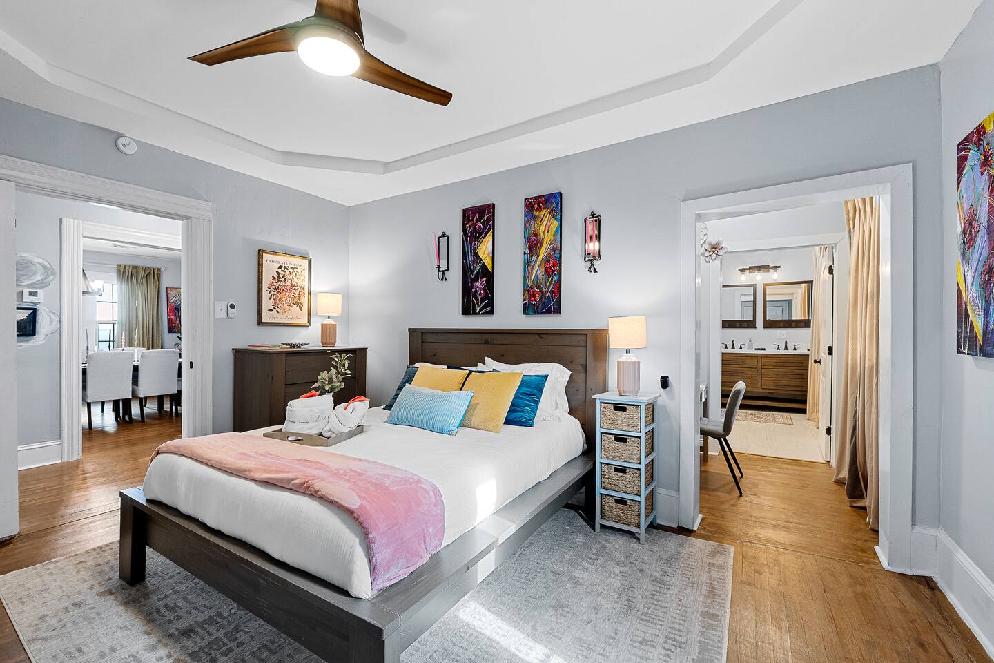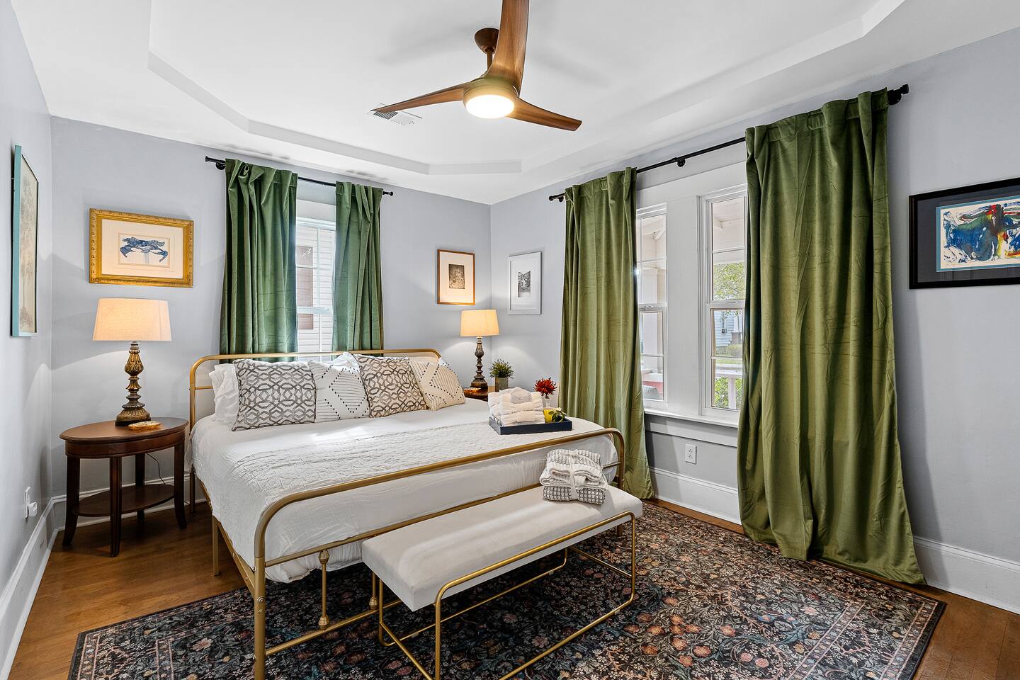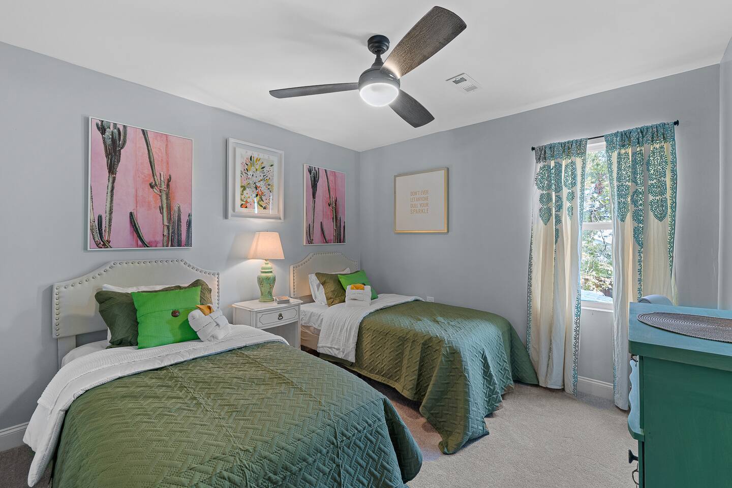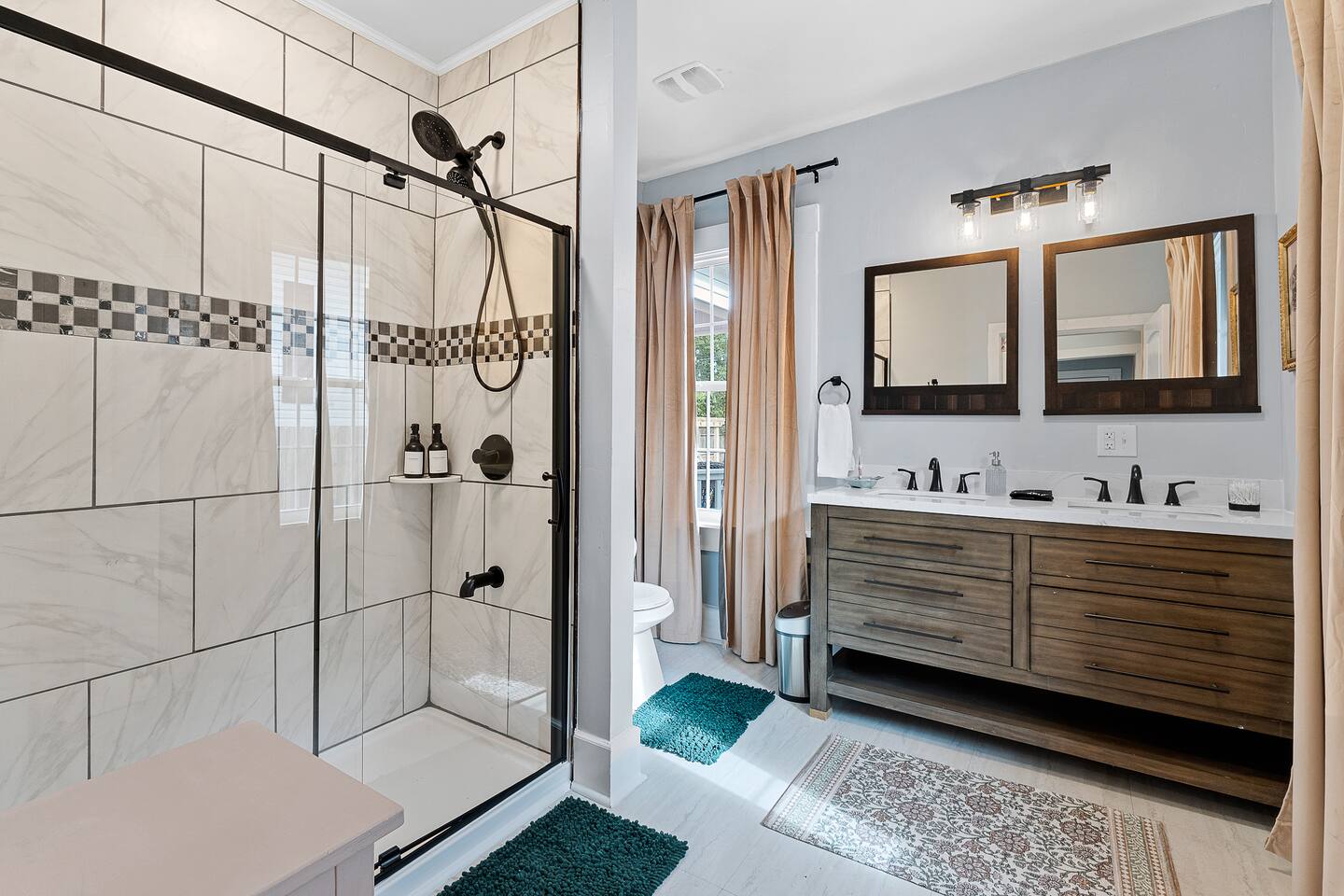 ✨ The Whistling Porch – Bright, Spacious Augusta Retreat Minutes from the Masters ✨ Welcome to The Whistling Porch, a light-filled, beautifully designed 4-bedroom, 3-bath retreat in the heart of Augusta, Georgia. This home is named in honor of our beloved grandpa Bob, who had a gift for spreading joy everywhere he went — often through a cheerful whistle. Just like Bob, this house radiates warmth, optimism, and the easy comfort of good company. Whether you’re here for the Masters Tournament, a family getaway, or a fun escape with friends, The Whistling Porch was made for laughter, relaxation, and lasting memories. 🏡 The Space Step inside and exhale — the home’s airy, open-concept design connects the family room, living room, dining area, and kitchen into one beautiful, social space. It’s perfect for cooking, entertaining, or just gathering around music and conversation. Kitchen: Bright, open, and fully stocked for real cooking and entertaining. You’ll find everything you could possibly need — a complete set of pots, pans, baking sheets, serving bowls, and utensils. There are two full silverware sets, a knife block, multiple glasses (including wine glasses and mugs), and essentials like olive oil, salt, pepper, and a full range of spices. Enjoy two coffee options — a Keurig and a Nespresso — plus a wine opener, bar tools, and thoughtful extras that make this kitchen feel like home. Dining Room: A beautiful centerpiece of the house with a large table for eight, upgraded gold-colored silverware, cloth napkins, martini tools, and elegant touches for special meals. The chandelier with Edison bulbs glows over colorful candlesticks, and we’ve even included candles and table décor for birthdays or celebrations, because we believe every stay deserves a little sparkle. Living Room: Spacious, comfortable, and designed for connection. Sink into the large sofa, stream your favorite shows on the Roku TV, and enjoy the natural light that fills the room throughout the day. It’s the perfect spot for relaxing after a day at the Masters, movie nights with friends, or lazy mornings with coffee in hand. 🛏 Bedrooms & Bathrooms Primary King Suite: Filled with natural light, ceiling fan, smart TV, and windows overlooking the front porch. Downstairs Queen Suite: Has its own private bathroom, dresser, TV, desk, and sitting area — perfect for guests seeking privacy. Upstairs King Bedroom: Airy and peaceful with soft blue tones, seating nook, ceiling fan, and TV. We call this the "sensory room" as there are no artwork at all, just neutral tones. Upstairs Twin Room: Two cozy twin beds with dresser, closet, and TV — ideal for kids or friends. Bathrooms: 3 total — bright, clean, and stocked with towels, essentials, and thoughtful touches. 🌙 Upstairs Hallway Nook At the top of the stairs, you’ll find a peaceful little hallway retreat — a quiet corner with a couple of comfortable seats, perfect for reading, journaling, or just taking a moment to yourself. As night falls, you’re accompanied by a friendly astronaut (long story!!) light that casts tiny twinkling stars across the ceiling, adding a dreamy glow to the space. It’s a small, magical touch that guests of all ages love — a gentle reminder that even in the calmest corners, there’s always a bit of wonder waiting. 🌿 Outdoor Living The outdoor spaces are pure Augusta magic. Front Porch: Classic Southern charm with a porch swing and cozy seating under string lights — a perfect spot to sip coffee or maybe channel a little Bob and whistle in the breeze. Backyard Retreat: Fenced-in and designed for relaxation and fun — featuring a fire pit, cornhole, ladderball, barbecue grill, pergola swing, tiki torches, BBQ, and plenty of comfortable seating. Outdoor Bluetooth speakers let you enjoy your favorite playlist under the stars. It’s the kind of backyard where afternoons stretch into evenings and memories linger long after the fire dies down. 🎮 Entertainment & Extras --Smart TVs in every bedroom + main living room --Record player and vinyl collection --Indoor & outdoor Bluetooth speakers --Games, puzzles, and backyard activities --LG washer & dryer --Fast Wi-Fi & multiple workspaces --Brand-new central A/C throughout 📍 Prime Augusta Location Perfectly located for everything you want to see and do: 🏌️ 9 minutes → Augusta National (Masters Tournament) 🏙️ 6 minutes → Downtown Augusta (Riverwalk, restaurants, nightlife) ⚾ 11 minutes → SRP Park & Augusta nightlife 🛍️ 13 minutes → Augusta Mall 🛒 8 minutes → Publix + Fresh Take Market ☕ 3 minutes → Starbucks & CVS 🏫 3 minutes → Augusta University (Summerville Campus) 🛍️ 7 minutes → Surrey Center Shopping & Dining ⛽ 10 minutes → Costco 🚑 5 minutes → Piedmont Augusta ER (just in case but hopefully not!) 🚶♀️ Walking distance → Trellis Coffee Bar, a local favorite for espresso and pastries 💖 Why Guests Love The Whistling Porch ✔️ Open-concept design that feels bright, spacious, and welcoming ✔️ Perfect for families, golfers, couples, or groups visiting for the Masters ✔️ Gorgeous indoor and outdoor spaces for entertaining ✔️ Fully stocked kitchen for real cooking and gathering ✔️ Fire pit, cornhole, ladderball, porch swing, and outdoor speakers ✔️ Vinyl player, games, and the perfect blend of style + comfort ✔️ Friendly neighborhood and walkable charm ✔️ Two-night minimum — but guests always wish they’d stayed longer 🌟 Come stay at The Whistling Porch — where comfort meets Southern charm, and the spirit of Bob’s easygoing whistle still lingers in the air.