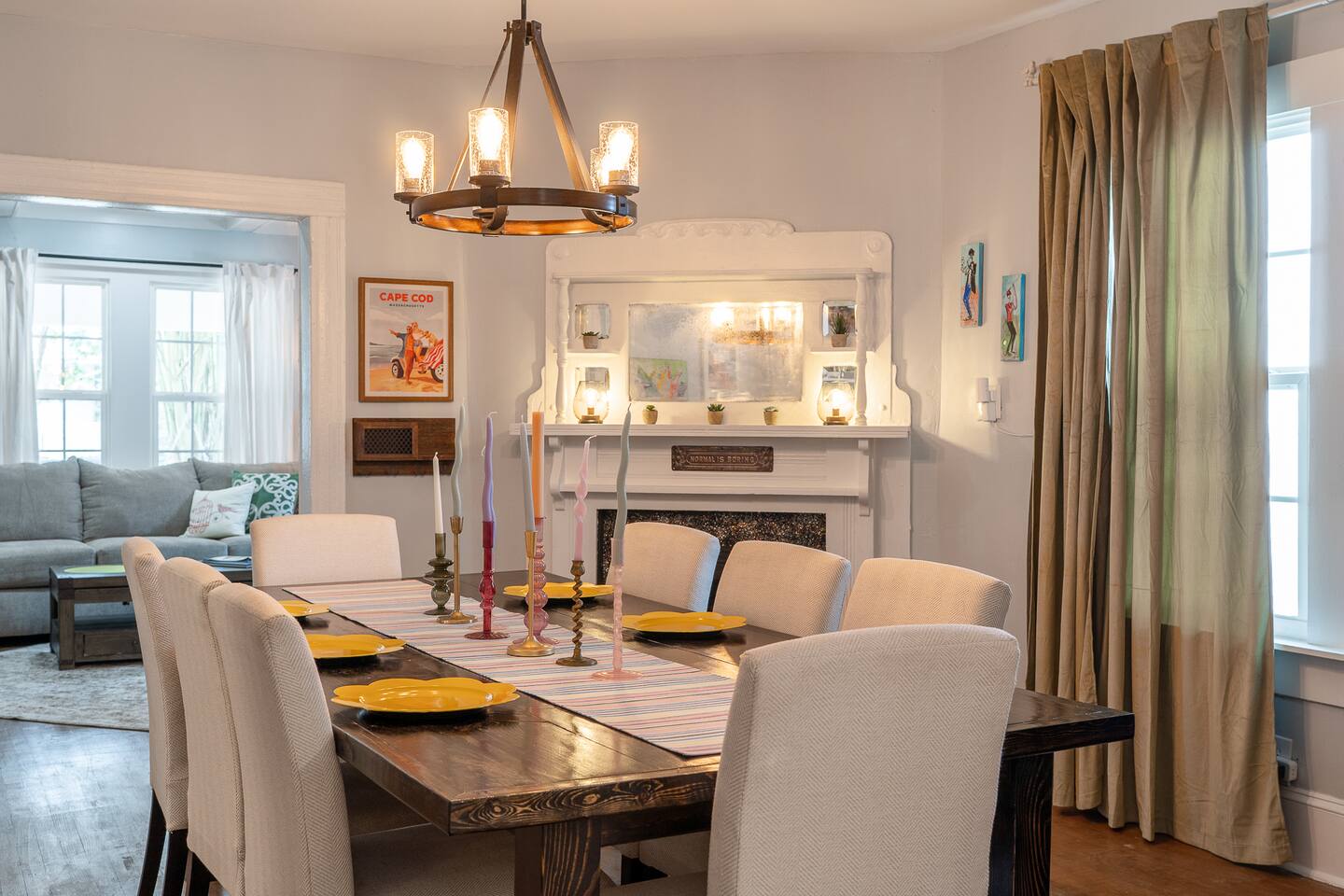 Welcome to The Whistling Porch—your Masters-week home base just 9 min from Augusta National and 6 min from downtown. This bright, spacious 4 BR retreat is perfect for golf trips and group hangs, with a bar, coffee, numerous TVs, fire pit, games, and plenty of room to relax. Grill out back, hang out in the chandelier-lit dining room, or kick back on the porch. Games, fire pit, fully equipped kitchen, laundry, eclectic decor, fast Wi-Fi, and new A/C keep it cool from tee-off to nightcap.